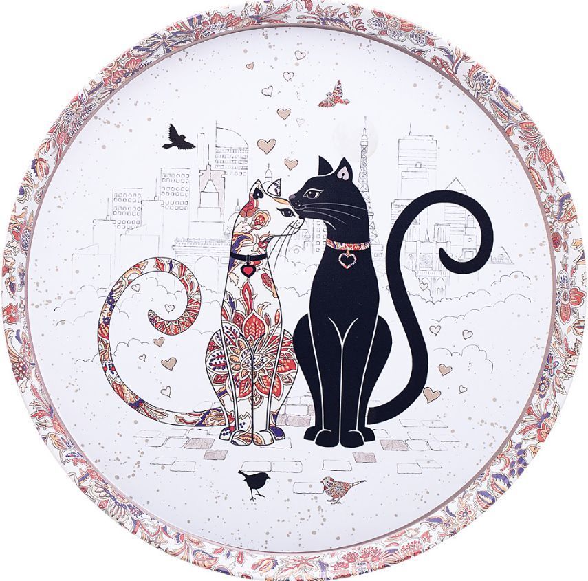 Размеры 33*2,1 СМ Материал: Парижские коты Поднос - это необходимый предмет для организации сервировки стола. Поднос имеет оптимальную круглую форму диаметром 33 см и удобные для переноса содержимого приподнятые стенки высотой 2,1 см. Коллекционный дизайн "Парижские коты" создает уютную атмосферу в интерьере. Благодаря глянцевой поверхности, поднос неприхотлив в уходе – достаточно протереть влажной тряпкой.