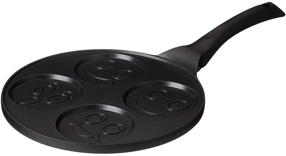 Готовьте с удовольствим в посуде бренда AGNESS Сковороды AGNESS серии "СМАЙЛ" выполнены из литого алюминия. Такая посуда отличается высокой теплопроводностью и устойчивостью к деформациям. Необычный дизайн сковороды позволит приготовить интересные и веселые оладушки и омлеты. Особенности: - Сковорода расчитана на 4 порций - Благодаря антипригарному покрытию Вам понадобится минимальное количество масла для приготовления. В посуде с антипригарным покрытием блюда не прилипают, а сковороду легко мыть. - Не нагревающаяся пластиковая ручка - Не подходит для индукционных плит - Рекомендована ручная мойка - Толщина бортика 3,5мм, толщина стенок 2,5мм, толщина дна 2,8мм