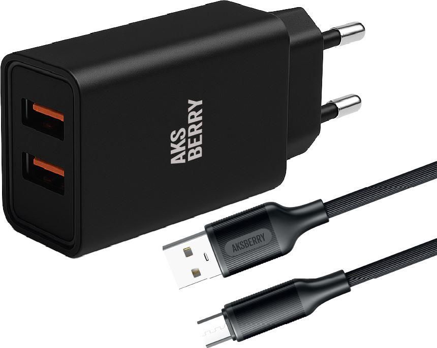 Читать все статьиAKSBERRY (6900209220015) T38 2 USB 2.4A + кабель MicroUSB, черный