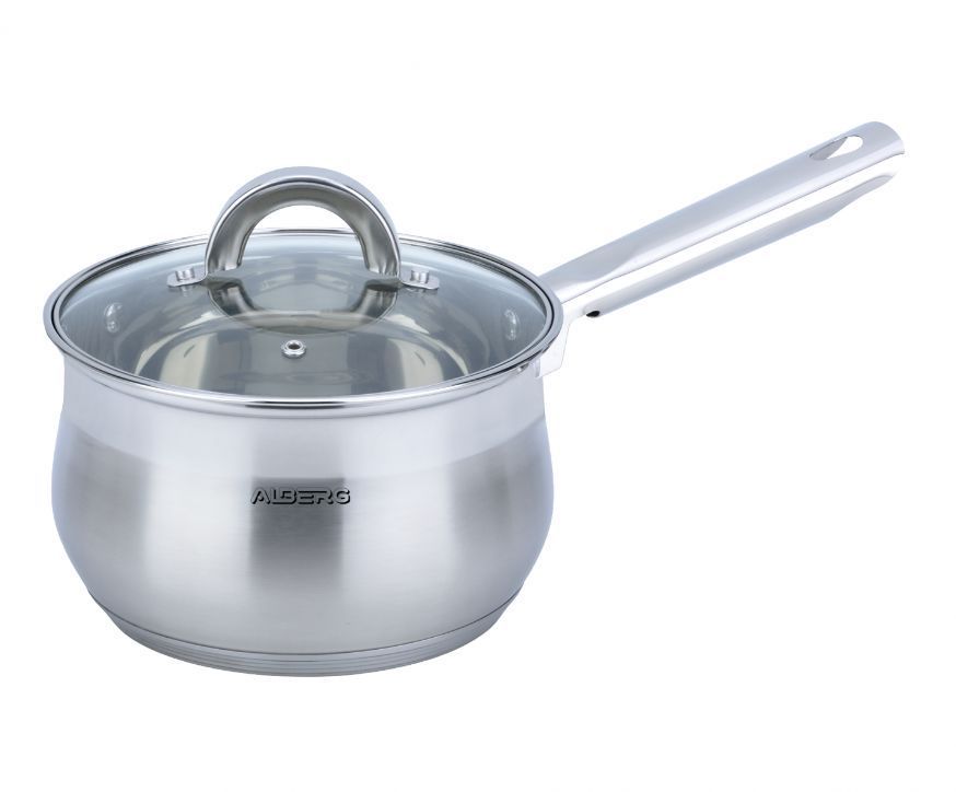 Ковш с крышкой 2.0 л (16 х 10,5 см) Мерная шкала Толщина стенок 0,5 мм Толщина дна 3 мм Высококачественная нержавеющая сталь Многослойное термоаккумулирующее капсулированное индукционное дно Крышка из жаропрочного стекла с отверстием для выхода пара Подходит для всех видов плит, включая индукционные Нельзя использовать в духовом шкафу Подходит для мойки в посудомоечной машине