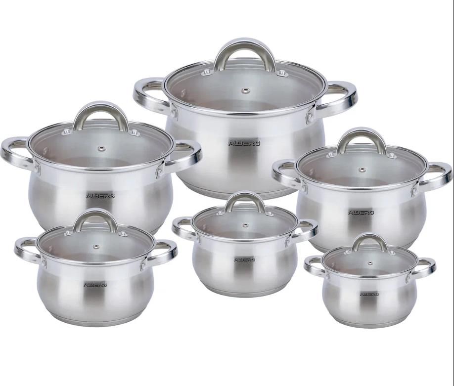 КОЛЛЕКЦИЯ Helge (Не цветная коробка) Кастрюля с крышкой 2.0 л (O16 х 10,5 см) Кастрюля с крышкой 3.0 л (O18 х 11,5 см) Кастрюля с крышкой 4.0 л (O20 х 12,5 см) Кастрюля с крышкой 5.0 л (O22 х 13,5 см) Кастрюля с крышкой 6.5 л (O24 х 14,5 см) Кастрюля с крышкой 8.0 л (O26 х 15 см) Нержавеющая сталь: марка AISI 201 Толщина стенки 0.5 мм Полировка снаружи: комбинированная Полировка внутри: матовая Мерная шкала: есть Индукция: есть Дно : 7-ми слойное (сендвич) Толщина дна: 3 мм + защитная пластина Ручки: стальные полые Крепление ручек: на клёпках Крышки: стекло Использование в духовке: нет Мытье в ПММ: не рекомендуется Для всех типов плит