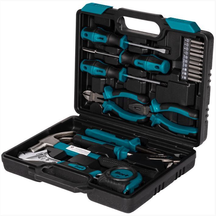 Материал: Сталь. Модель: BTK-19. Предметов в наборе, шт: 19. Отвертка 2шт. Отвертка-держатель для бит 1шт. Биты 10шт. Клещи переставные 1шт. Бокорезы 1шт. Плоскогубцы 1шт. Ключ разводной 1шт. Молоток 1шт. Рулетка 1шт. Кейс.