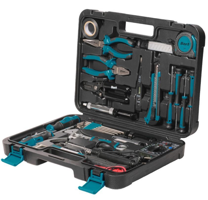 Комплект ручного инструмента Bort BTK-30e это специально разработанный набор для электромонтажных работ и монтажа электронных компонентов. Работа монтажника это кропотливый труд, требующий большой концентрации. Данный набор поможет оптимизировать рабочий процесс и сделать работу чуть более легкой. Набор состоит из 30 элементов. Каждый инструмент изготовлен из качественной стали. Все инструменты упакованы в стильный и прочный кейс. Материал: Сталь CrV. Модель: BTK-30e. Предметов в наборе, шт: 30. Расширенная гарантия, г: 5.
