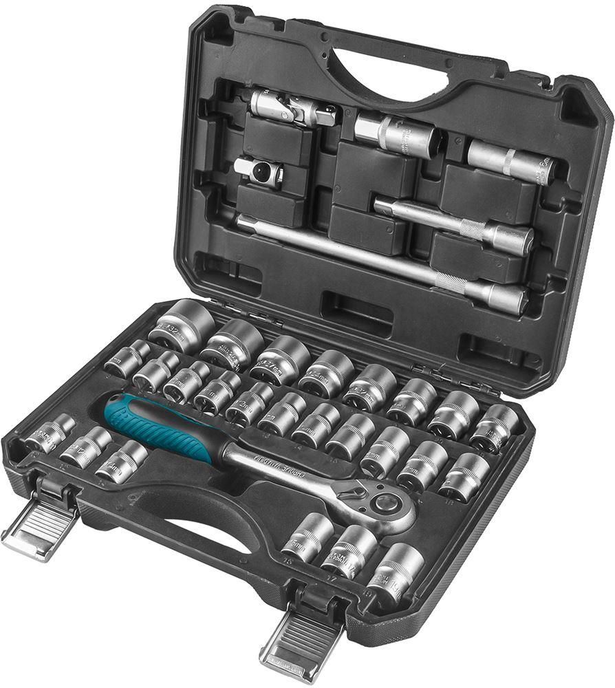 Brand: BORT Предметов в наборе, шт: 33 Материал: Сталь CRV Вес нетто, кг: 4,2 Вес брутто, кг: 4,4 Габариты упаковки, см: 34 x 25 x 7 Гарантия, г: 2 Расширенная гарантия, г: 5 Мастер-бокс, шт: 1 EAN13: 4260623418514 Модель: BTK-33