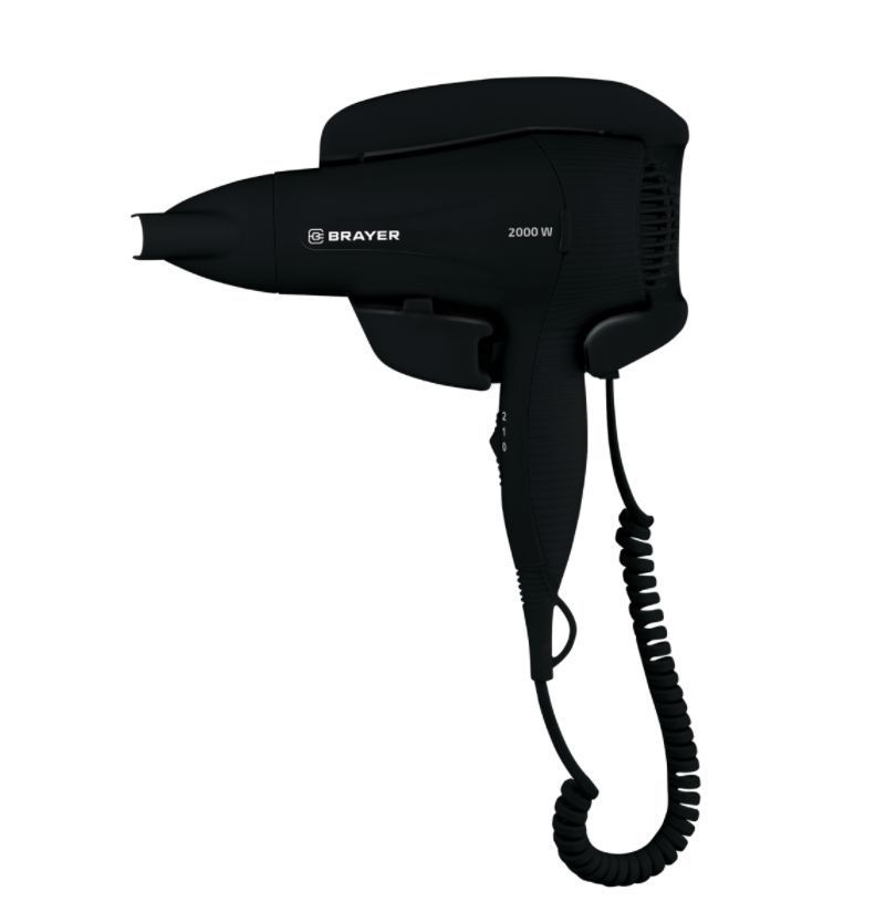 3021BR-BK Фен настенный BRAYER, 2000, 2 скор, 2 реж нагрева, концентратор, холод, 1,8 м,