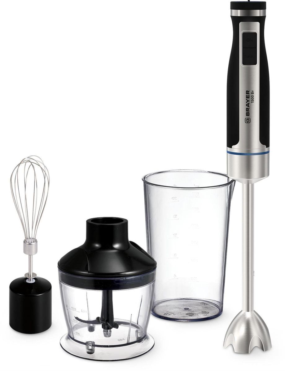 Мощность 1500 Вт Лезвия из титана Погружная часть из нержавеющей стали Корпус из пластика, декорирован нержавеющей сталью Плавная регулировка скорости Турборежим Скорость вращения: 14000 об/мин ± 10% Насадка-венчик для взбивания Стакан для смешивания 600 мл Удлиненная насадка-блендер для измельчения и смешивания Насадка-измельчитель объёмом 500 мл Длина шнура 1 м Электропитание 220-240 В, 50-60 Гц