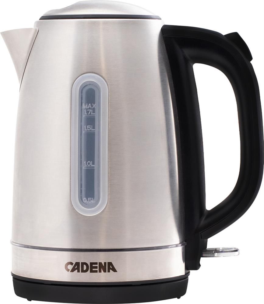 Чайник электрический CADENA KC531M — прибор с корпусом из нержавеющей стали AISI 304, скрытым нагревательным элементом и LED-подсветкой расположенной по низу колбы голубого цвета и индикацией включения, корпус оборудован мерной шкалой. Устройство оснащено надежной контактной группой STRIX, имеет съемный фильтр от накипи. >Высокая мощность 1850 - 2200Вт >Корпус из нержавеющей стали AISI 304, устойчив к накипи и ржавчине, устойчив к механическому воздействию. >Мерная шкала уровня воды. >Большой объем 1,7л >Контактная группа Strix, надежность и долговечность >Вращается на 360, удобно пользоваться для правшей и левшей. >Широкая горловина, удобная очистка чайника >Фильтр от накипи на носике, легко снимается и очищается. >Подсветка прекрасно дополнят дизайн. >Индикация работы. >Скрытый кольцевой нагревательный элемет, равномерно распределяет нагрев, удобство в обсуживании. >Защита от старта без воды, отключение при закипании и снятии с подставки.