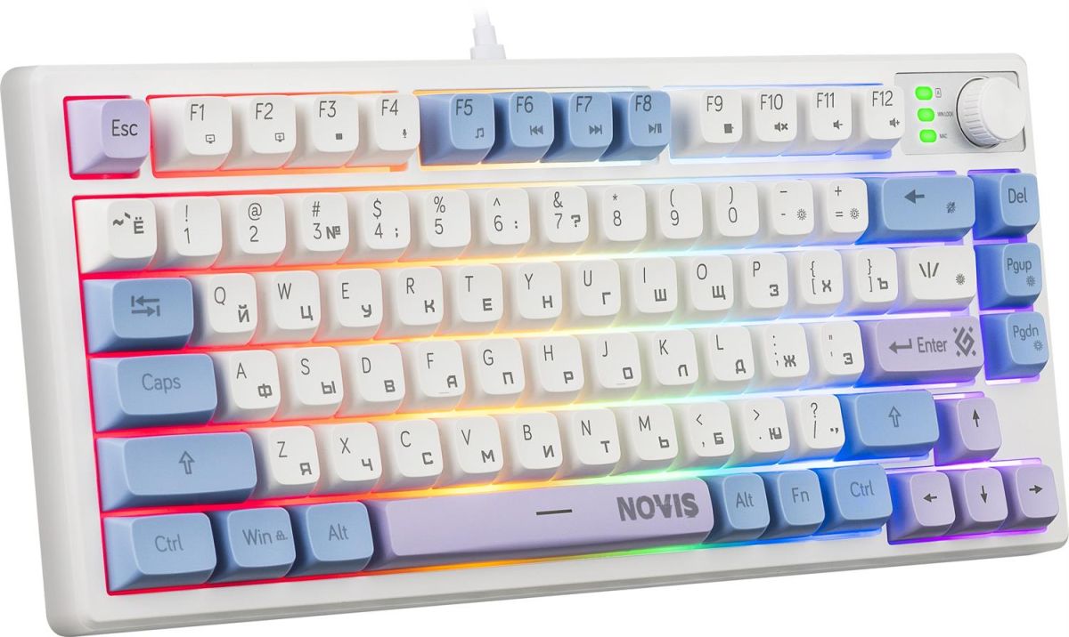 Компактная проводная игровая клавиатура с радужной подсветкой и регулятором громкости звука. Основные особенности модели: возможность блокировки клавиши Win, обмен функциями между клавишами WASD и стрелками, поддержка Anti-ghost для 19 клавиш, наличие двухуровневой регулировки угла наклона, отключаемый кабель USB-Type С и резиновые накладки для предотвращения скольжения.