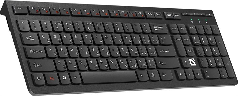 Клавиатура беспроводная, интерфейс подключения - USB, рабочая частота 2.4 ГГц, количество дополнительных клавиш (функций) 4 (+FN), увеличенная площадь клавиш-модификаторов (Ctrl, Shift), клавиш Enter и BackSpace, удобные закругленные клавиши,