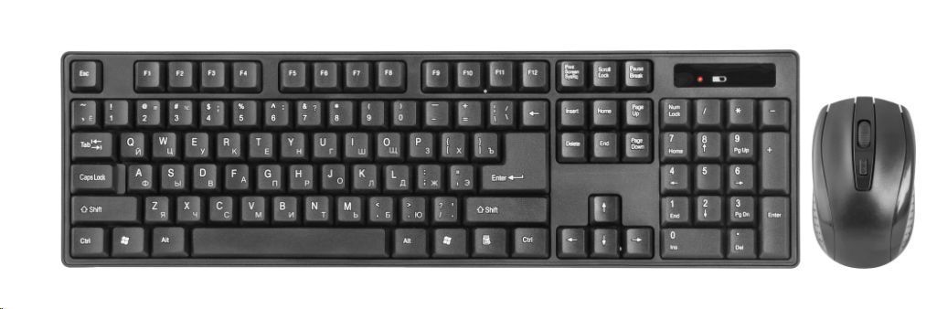 Интерфейс подключения: USB, Тип клавиатуры: Мембранная, Кол-во клавиш 104шт, Радиус действия: 10 м, Мощность радиоинтерфейса: 1Вт, Рабочая частота 2.4ГГц, Разрешение: 800/1000/1200 dpi, Тип сенсора: Оптический,Питани (клавиатура): 2х AAA, Количество кнопок (мышь): 3 + колесо-кнопка, Питание (мышь): 1 х AA, Совместимость: Windows 2000/XP/Vista/7/8/10, Mac OS X10.