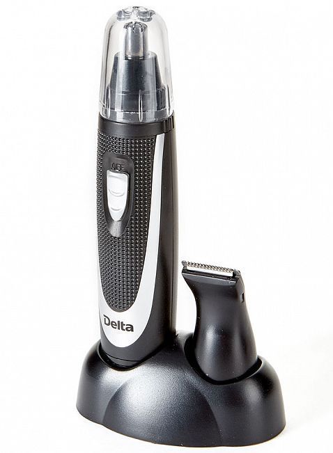 DELTA DL-4301 Параметры В комплекте 2 съемные насадки: насадка для носа, ушей и бровей 1 штука насадка для висков, бороды и усов 1 штука Номинальная потребляемая мощность 2 Вт Описание Бережное удаление нежелательных волосков Компактный размер триммера позволяет брать его с собой в дорогу Низкий уровень шума Простота использования Корпус из высококачественного пластика Цвет: черный с серебристым Лезвия из нержавеющей стали Защитная крышка Щеточка для чистки Подставка для хранения Электропитание: 2 батареи АА 1,5 В (в комплект поставки не входят)