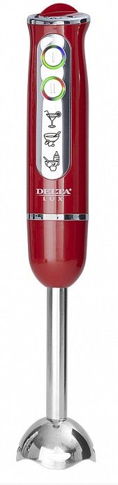 Номинальная потребляемая мощность 800 Вт, Блендер предназначен для смешивания, измельчения и взбивания продуктов и жидкостей в бытовых условиях, Цвет: красный, Индикатор сети с LED-подсветкой кнопок, Насадка и нож из нержавеющей стали с 4 лезвиями, Плавная регулировка скорости, Режим «ТУРБО», Упаковка: цветная коробка.