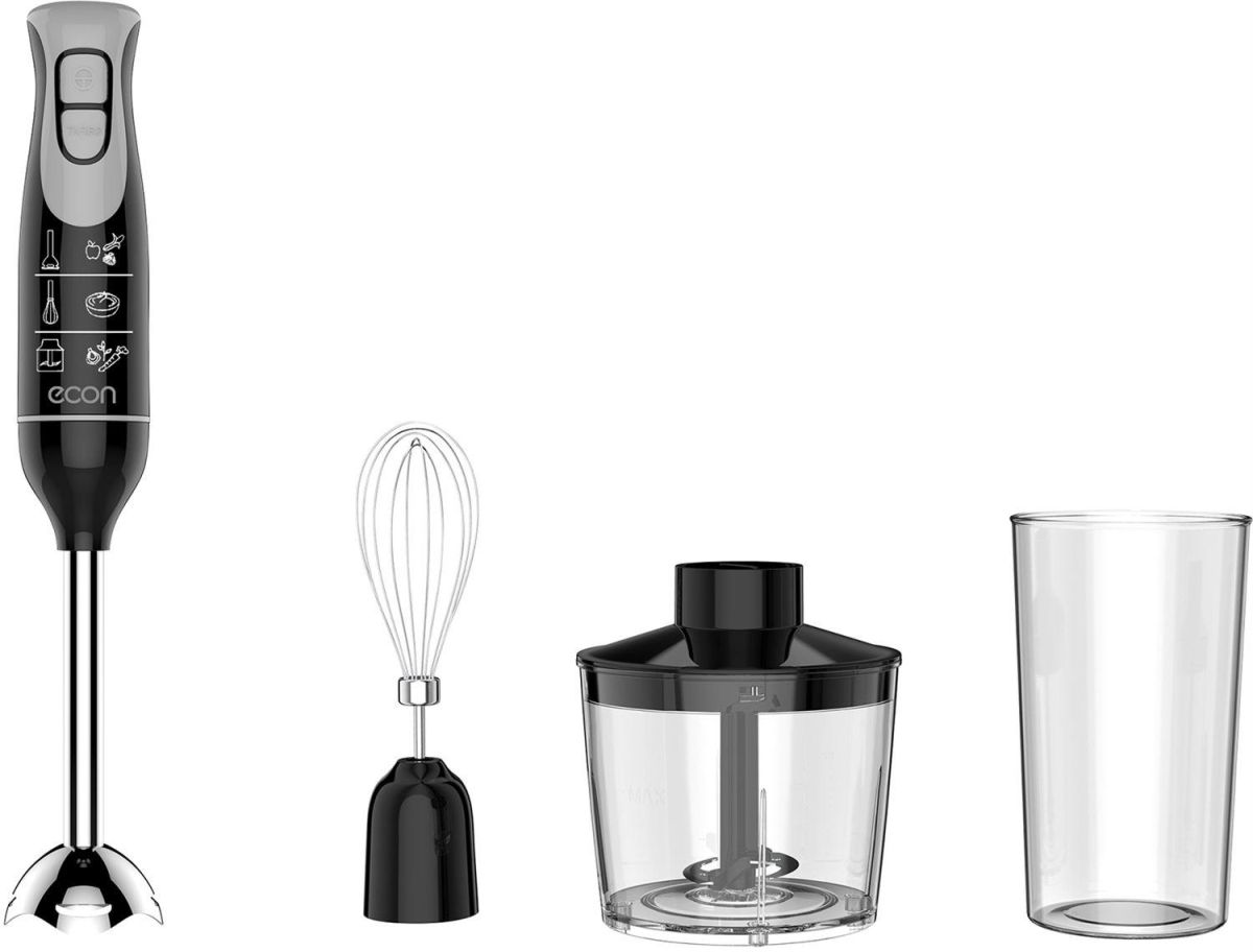 Блендер погружной, максимальная мощность 1400 Вт, 2 скорости, режим ТУРБО, стальная насадка-блендер, стальной нож - 2 лепестка, измельчитель 500 мл, мерный стакан 700 мл, венчик