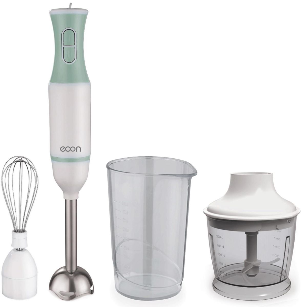 Блендер погружной, максимальная мощность 700 Вт, импульсный режим работы, 2 скорости, насадка-блендер из нержавеющей стали, съемная насадка-венчик из нержавеющей стали, мини-измельчитель 500 мл, мерный стакан 700 мл, цвет белый с фисташковым