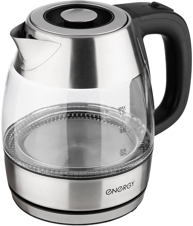 Объем 1,2 л Корпус из термостойкого боросиликатного стекла Шкала уровня воды Светодиодная внутренняя подсветка Закрытый нагревательный элемент из нержавеющей стали Поворот на подставке 360° Защита от работы без воды Автоматический выключатель Мощность 1850-2200 Вт Длина шнура 72 см