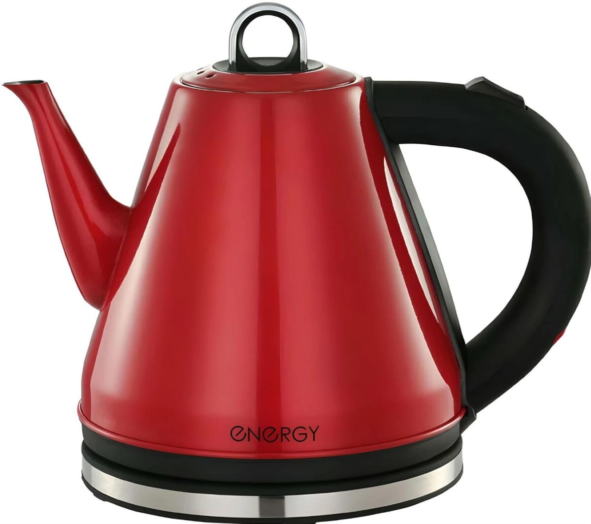 ENERGY E-263 (1,2 л, диск) стальной, красный Объем 1,2 л Корпус из нержавеющей стали Закрытый нагревательный элемент из нержавеющей стали Поворот на подставке 360° Защита от работы без воды Автоматический выключатель Световой индикатор работы Место для хранения шнура Мощность 950 Вт