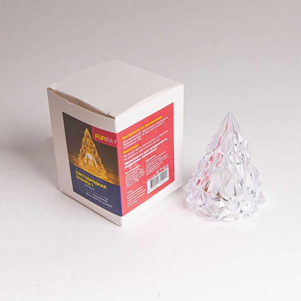 Декоративный светильник «Светодиодная елочка» это отличное решение для праздничного оформления пространства! Декоративная елочка излучает теплый белый свет, который красиво отражаясь от ее граней, создает неповторимый узор вокруг. Такая деталь интерьера позволяет создать уютную праздничную атмосферу и порадовать себя, близких и гостей. Светильник отлично сочетается с другими предметами интерьера и вписывается в общую композицию. Работает светильник от батареек (AG10*3 (в компл.). Выполнен из прозрачного прочного пластика. Размер светильника 60*80 мм. Также декоративный светильник «Светодиодная елочка» будет пользоваться спросом в качестве новогоднего подарка, сувенира и корпоративного презента.