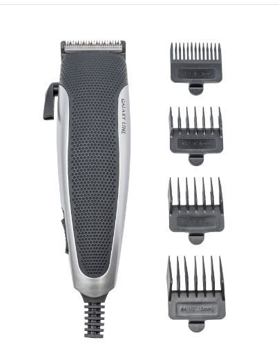 GALAXY LINE GL 4109 Номинальная мощность: 15 Вт Лезвия из нержавеющей стали Ширина лезвия 45 мм 4 насадки-расчески (3, 6, 9, 12 мм) Рычаг регулировки длины лезвия Подвесная петля Щетка для чистки, масло для смазки, расческа, ножницы, защитный колпачок в комплекте Длина шнура питания: 160 см Параметры питания 220-240 В ~ 50 Гц Гарантия: 2 года