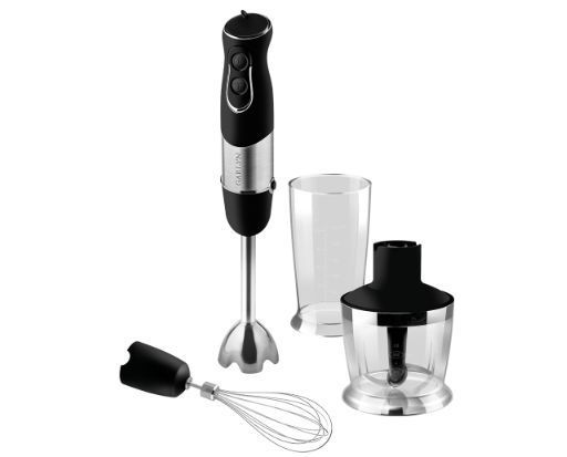 Макс. мощность 1300 Вт; 3 в 1: насадка блендер, насадка-венчик, насадка-измельчитель; Скорость работы в основном режиме 9 000-15 000 об/мин; Скорость работы в режиме «Турбо» 16 000 об/мин; Материал корпуса: пластик/металл; Объем чаши измельчителя с крышкой 0,5 л; Объем стакана для смешивания 0,6 л;