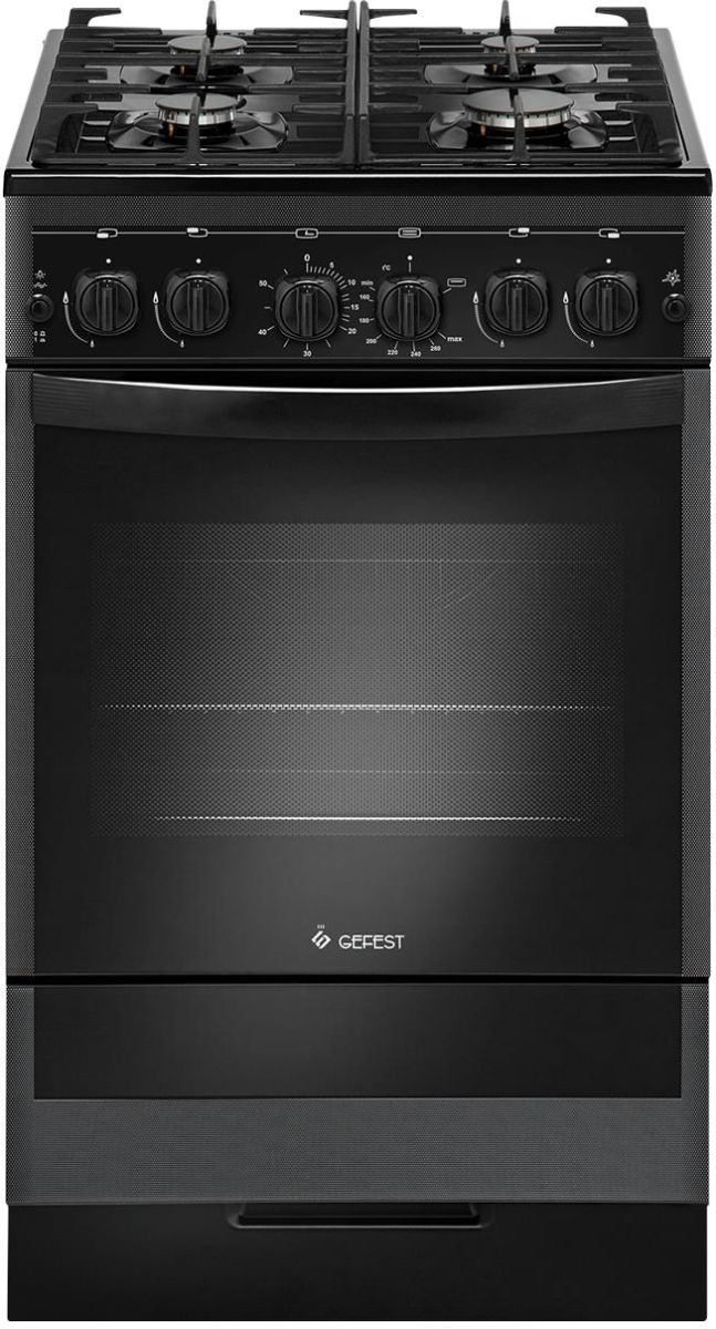 Габаритные размеры ШхГхВ: 50х58.5х85 см Полезный объём духовки: 52 л Цвет: черный. Варочная поверхность: стеклянная Вертел с электроприводом, Проволочные направляющие, Выдвижной ящик, Таймер механический, Газ-контроль духовки, Терморегулятор (термостат, )Гриль, Чугунные решетки, Ножки регулировочные, Электророзжиг горелок, кнопка розжига на панели, Подсветка духовки одинарная, Электророзжиг духовки, кнопка розжига на панели
