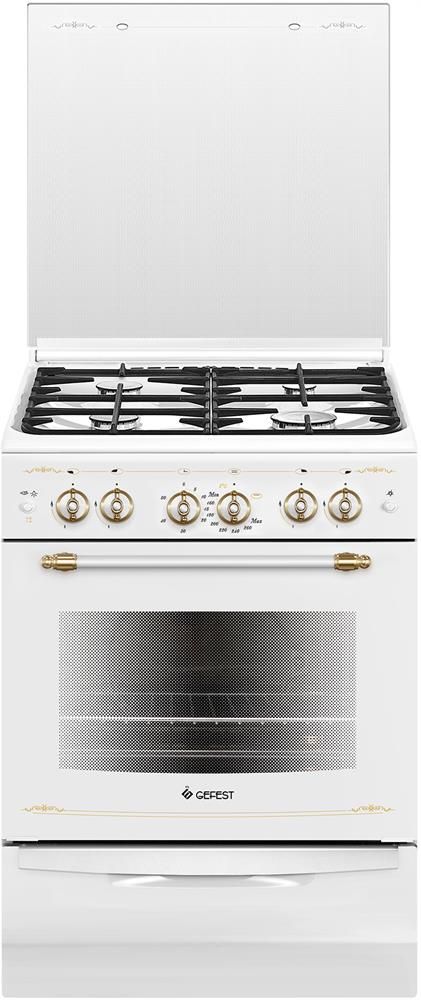Габаритные размеры ШхГхВ: 60х60х85 см * Цвет: белый. *Полезный объём духовки: 52 л * Варочная поверхность: эмалированная. * Вертел с электроприводом * Съемные проволочные направляющие духовки * Выдвижной ящик для посуды и принадлежностей * Таймер механический * Газ-контроль духовки * Терморегулятор (термостат) * Гриль * Ножки регулировочные * Электророзжиг горелок, кнопка розжига на панели * Подсветка духовки двойная * Электророзжиг духовки, кнопка розжига на панели