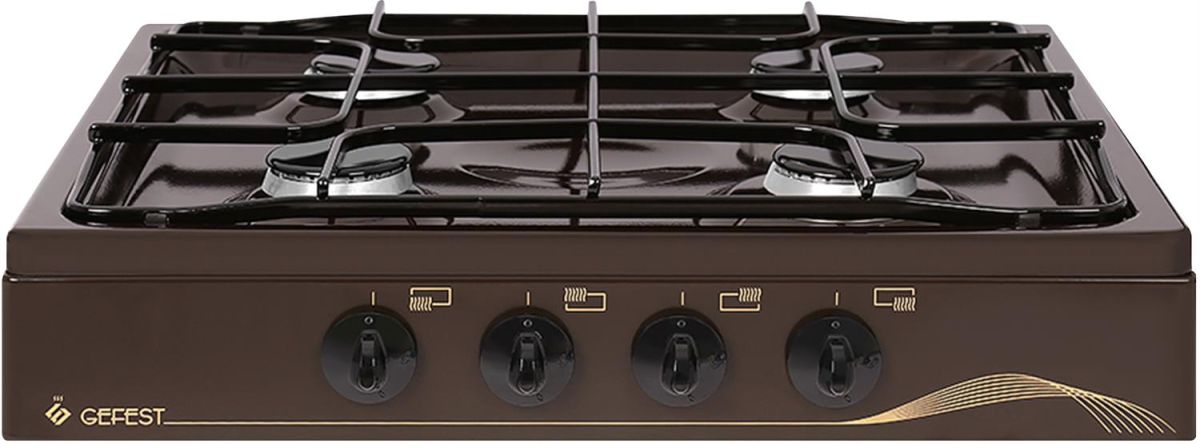 Габариты, ШхГхВ, см: 50х52х12.7; Цвет: коричневый; Ширина, см: 50; Фасад: эмалированный; Варочная поверхность: эмалированная; Решетки стола: стальные; Присоединительная резьба газопровода: G 1/2; Ножки регулировочные; Рабочая поверхность: газовая; Количество зон приготовления: 4; Мощность горелок стола, кВт: 1,7; Газ-контроль горелок стола; Комплектность: комплект сменных сопел, шланг присоединительный; Масса нетто, кг: 6,2