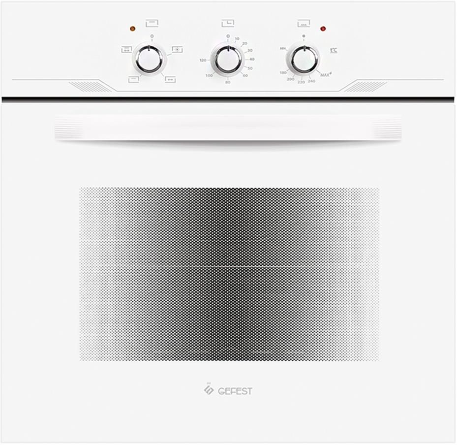 Габариты, ШхГхВ, см: 59.8х56.5х59.5; Тип духовки: газоэлектрическая; Фасад: стеклянный; Цвет: белый; Размеры монтажного проема, ШхГхВ, см: 55x54x57; Ширина, см: 59,8; Класс электробезопасности: I; Диапазон номинальных напряжений, В: 220-230; Номинальная потребляемая мощность электроэнергии, кВт: 1,138-1,245; Присоединительная резьба газопровода: G 1/2; Объем духовки, л: 52; Основная горелка газовая; Диапазон температур работы духовки,°C 170-240; Мощность горелки духовки, кВт: 3,1; ТЭН-гриль, кВт: 1,2; Электророзжиг духовки: встроен в ручки; Газ-контроль духовки; Таймер: механический; Управление духовки: механическое; Терморегулятор (ТЕРМОСТАТ); Гриль: электрический; Вертел с электроприводом; Подсветка духовки: двойная; Направляющие духовки: съемные проволочные; Стекло дверцы духовки: двойное; Комплектность: решетка, жаровня , сменное сопло, противень; Сетевой шнур и вилка: в наличии