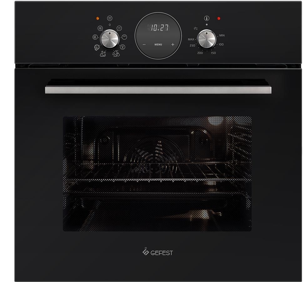 Духовой шкаф. Габаритные размеры ШхГхВ: 59.8х56.5х59.5 см. Цвет: черный. Панель управления: черная матовая. Полезный объём духовки: 55 л, Гриль электрический. Таймер сенсорный. Подсветка духовки двойная. Усиленный гриль с конвекцией. Съемные проволочные направляющие духовки. Утапливаемые ручки управления. Диапазон номинальных напряжений, В: 220-230. Фасад: эмалированный. Сетевой шнур и вилка: в наличии. Класс электробезопасности: I.