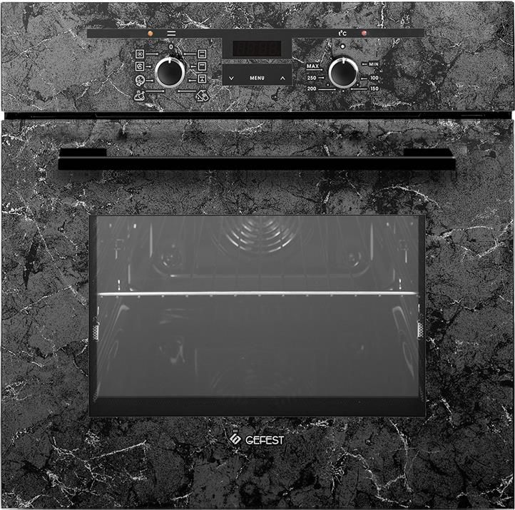 Духовой шкаф. Цвет: черный с рисунком "мрамор". Габаритные размеры ШхГхВ: 59.8х56.5х59.5 см. Объём духовки: 55 л. Гриль электрический. Таймер сенсорный. Подсветка духовки двойная. Телескопические направляющие. Съемные проволочные направляющие духовки. Усиленный гриль с конвекцией. Класс электробезопасности: I.