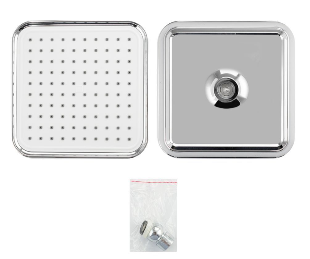 Душевая лейка тропический душ квадратная с белой вставкой, отличается современным технологичным дизайном, высокой надежностью, долговечностью. Она изготовлена из влагостойкого пластика АБС и имеет декоративное покрытие цвета «хром», придающее устройству привлекательный вид и предохраняющее от агрессивного воздействия окружающей среды. Корпус отличается небольшим весом, что исключает повреждение напольной плитки или эмали ванны при случайном падении. Лейка крепится к штанге при помощи шарнирного соединителя, внутрь которого встроен сетчатый аэратор для равномерного распределения воды. Также шарнирный соединитель позволяет менять угол наклона душевой насадки от 0° до 22°. Конструкция душа создает эффект тропического ливня, делая водные процедуры приятными и комфортными. Ухаживать за душевой лейкой легко. Глянцевую поверхность достаточно протереть мягкой салфеткой, она в течение долгого времени не потеряет своего блеска.
