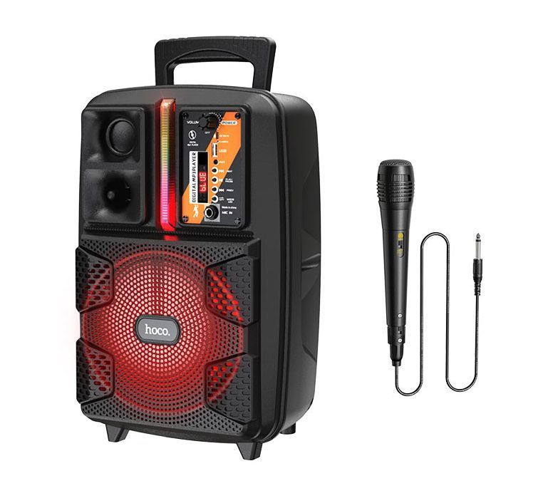 Спикер: 8 дюймов 2Ом 15W. Аккумулятор: 1800mAh, класс A, 18650. BT спецификация: BT V5.0 Zhongke Blue Flood. Функции: поддержка BT проигрывания / BT TWS соединения, FM, USB, AUX режимов проигрывания, вход для проводного микрофона. Поддержка переключения подсветки. Зарядное напряжение: DC 5V, время зарядки около 2.5 часов. В режиме музыки: около 3 часов (при громкости 80%). Размеры: 592*510*388 мм. Вес: 1.9 кг.