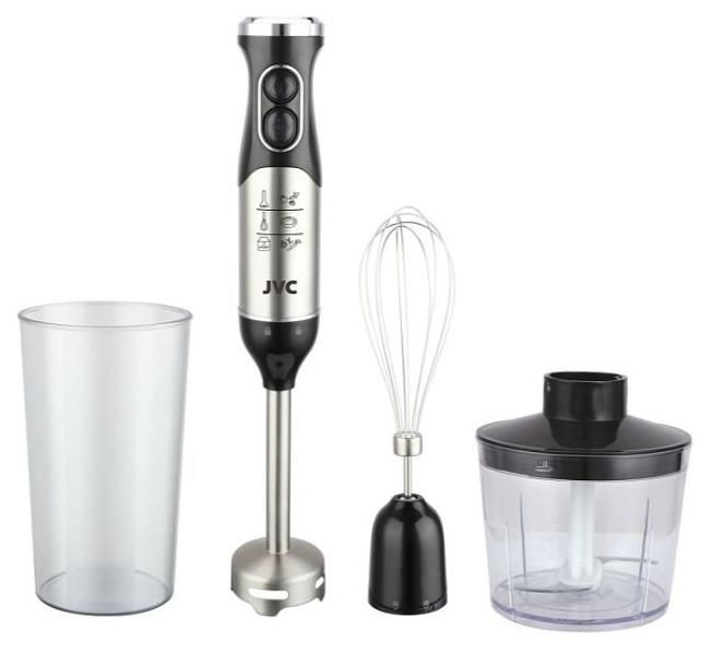 Блендер погружной, набор, максимальная мощность 1000 ватт, 2 скорости включая режим ТУРБО, бесступенчая регулировка скорости - до 6 скоростых режимов, погружная часть блендера из нержавеющей стали, измельчитель 500 мл, мерный стакан 700 мл, венчик для взбивания, цвет корпуса черный с металлической вставкой