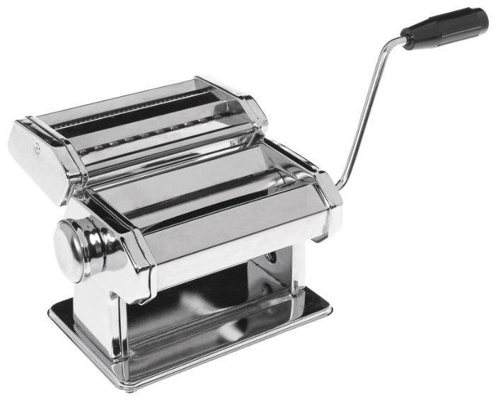 Насадка д/пельменей (равиолли). 9 режимов толщины раскатки теста. Нож д/резки теста. Нарезной блок для 2-х видов лапши. Нарезка лапши 2мм и 6.6мм. Валик д/раскатки теста. Регулятор толщины теста. Механический привод. Инструкция + рецепты.