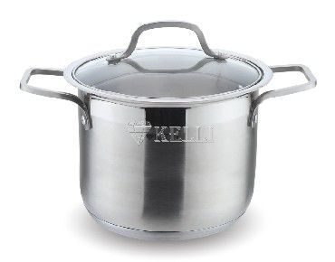 КАСТРЮЛЯ Объем 17,5 л Высокачественная нержавеющая сталь 5-ти слойное капсульное дно Подходит для индукции Стеклянная жаропрочная крышка с паровыпуском диаметром 30 см Удобные термостойкие клепаные ручки Матовая внутри и снаружи Мерная шкала внутри кастрю