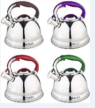 Металлический чайник со свистком; Объем: 3л; Высококачественная нержавеющая сталь; Литое утолщенное дно; Зеркальная полировка; Силиконовая ручка -не нагревается; Свистит при закипании; Цвета в ассортименте