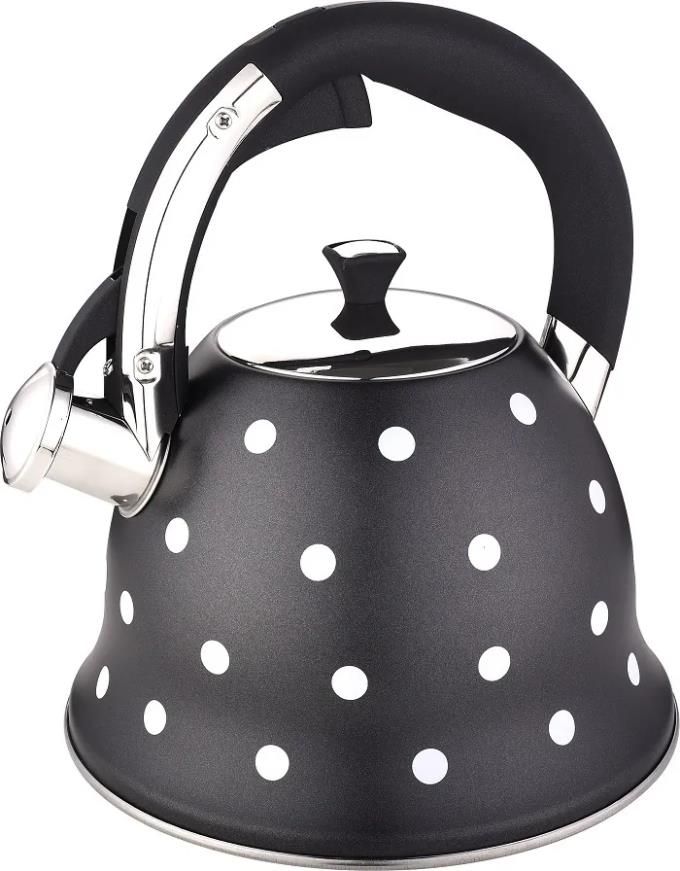 Металлический чайник со свистком. Объем: 3 л. Высококачественная нержавеющая сталь. 3-х слойное капсульное дно. Пластиковая ручка не нагревается. Свистит при закипании. Современный дизайн. Подходит для всех видов плит