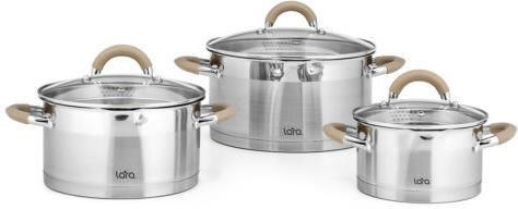 Объем 1,7 л, 3,1 л, 5,7 л. Материал - Нержавеющая сталь AISI 201. Полировка – Комбинированная. Дно - Индукционное, Капсулированное. Мытье - В посудомоечной машине, Ручная мойка. Использование в духовке – Нет. Отверстия для слива воды - 3 мм и 6 мм, сливной носик. Ручки - Нержавеющая сталь, Полые, Силиконовая отделка