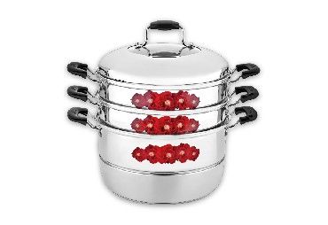 LR03-40 Мантоварка-пароварка LARA (нерж) 28x31см, 11л, 3 СЕКЦИИ + КРЫШКА с окном, сталь 0,5 мм