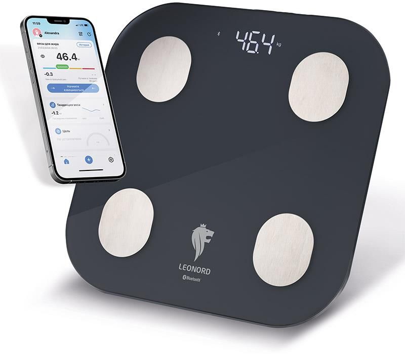 Напряжение 4,5 В Крупный LED дисплей с подсветкой Высокопрочное закаленное стекло Стеклянная поверхность 28*28см Bluetooth Хранение информации на Вашем мобильном устройстве(память на 10 пользователей) 17 показателей за 5 секунд Противоскользящие ножки Максимальная нагрузка 180 кг Цена деления 100 г Индикатор перегрузки и низкого заряда батарейки Автоотключение Питание от 3х батареек ААA (входят в комплект) Гарантия 2 года