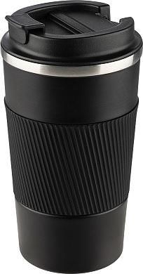 Термокружка сохраняет необходимую температуру напитков длительное время. Объем: 500 мл Размер: 17.5*6.9*6.9 см Преимущества: - Герметичность. Наличие плотно прилегающей крышки препятствует разбрызгиванию. - Силиконовое кольцо для удобства переноски. - Отверстие для питья и выхода пара с плотно закрывающейся крышкой - Противоскользящее основание - Экологичность материалов, которые не несут вреда для людей и окружающей среды. - Двойная теплоизоляция, которая гарантирует стабильное поддержание необходимой температуры жидкости. - Долговечность. Использование прочных материалов, устойчивых к коррозии, гарантирует долгий срок эксплуатации. Материал: нержавеющая сталь (304 внутри, 201 снаружи), элементы из пластика, силикона Цвет: чёрный