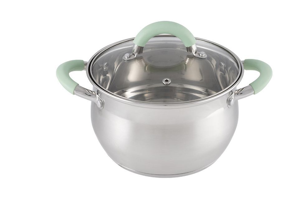 Кастрюля MENTOLO, 3,6 л, из нержавеющей стали с крышкой, ручки с силиконом Материал нерж сталь 201, жаропрочное стекло, силикон, алюминий, 430 сталь. Толщина стенок: 0,5 мм. Силиконовое покрытие на ручках. Ручки полые из нерж стали. Дно капсулированное: 201 сталь+1 мм алюм+430 сталь. Подходит для всех типов плит. Смешанная полировка внешнего корпуса, внутри — зеркальная полировка с отметками литража. Крышка из жаропрочного стекла с отверстием для выпуска пара. Размер 20*11,5 см. Объем 3,6 л. Упаковка: цветной ремень.