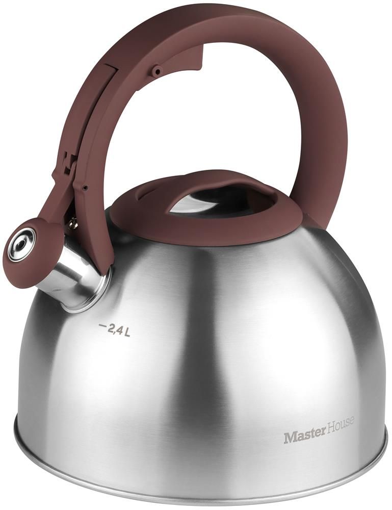 Чайник из со свистком 2,4 литра. Нержавеющая сталь 304 (18/10). Цвет сталь, ручка шоколад.