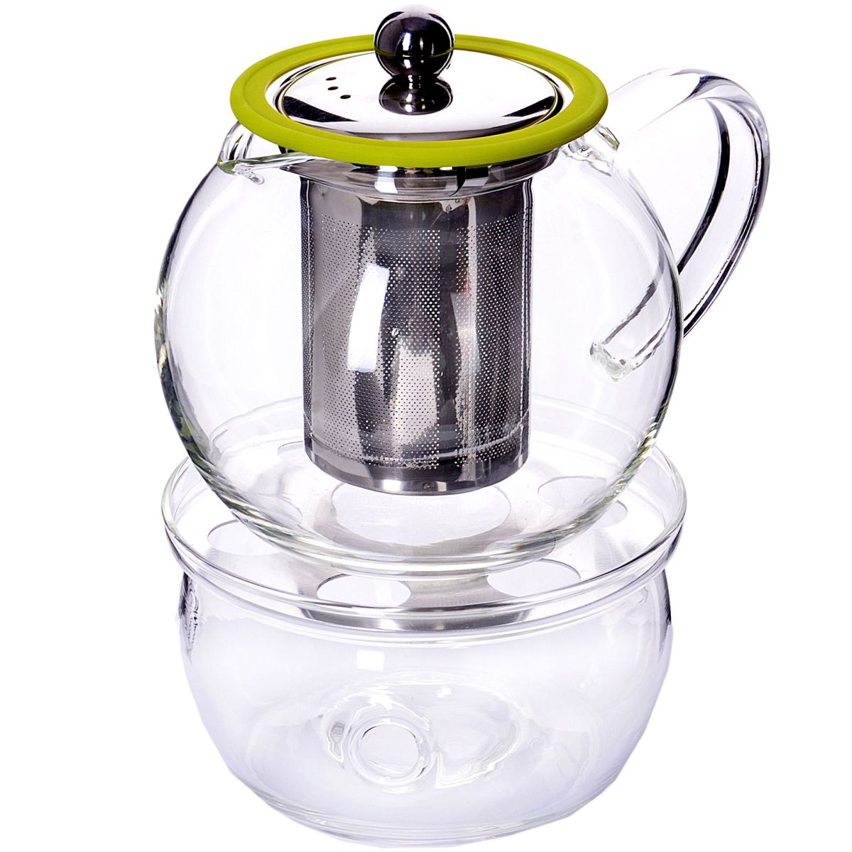 Чайник заварочный МВ (х12). Материал корпуса: боросиликатное стекло. Крышка: нержавеющая сталь. Фильтр: нержавеющая сталь, силикон. Колба д/подогрева: боросиликатное стекло. Подставка на колбе: нержавеющая сталь. Цвет: прозрачный, серебристый, салатовый. Объем: 800 мл. Высота чайника с крышкой: 13,5 см. Диаметр чайника (нижний): 12 см. Высота чайника с подогревателем: 19,5 см. Размер упаковки: 14,5 х 14 х 20,8 см. Упаковка: коробка. Вес: 590 г. Страна производитель: Китай.