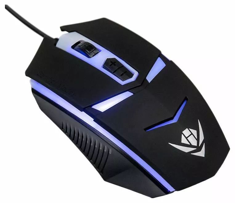 Игровая оптическая проводная мышь с подсветкой. Крупная симметричная мышь - подходит одинаково и для правшей, и для левшей. Материал корпуса матовый черный пластик, верхняя панель с кнопками - пластик софт-тач. Вставки из полупрозрачного светлого пластика (подсветка). Подсветка красная, зеленая, синяя, фиолетовя, голубая - сменяется циклически. Динамически изменяемое разрешение изменяется кнопками "+" и "-" (800/1200/1600dpi). Интерфейс подключения USB 2.0. Длина кабеля - 1.5 м. Количество кнопок - 5. Размер - 120*72*38 мм. Вес - 75 г.
