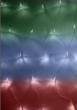 Гирлянда-сеть представляет из себя прозрачное полотно ввиде квадрата размером 1,5*1,5 метра, разбитого на равные ромбы, в углах которых находятся диоды четырех цветов. Тип и кол-во источников света 150 LED.Срок службы 50 000 часов. Доп. Контроллер с 8 реж