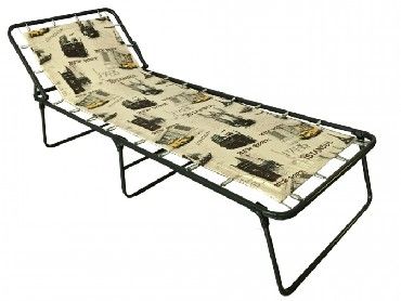 Габаритные размеры изделия (длина х ширина х высота), мм : 1970х733х340. Максимальная нагрузка: 120 кг. Каркас: основание - труба стальная ф25х1,0; опоры - труба стальная ф19х1,0; полимерное покрытие; пружина. Матрас: ткань 45% п/э – 55% хлопок, плотность 108 – 111 г/м2, ткань полипропиленовая, крепление к каркасу осуществляется с помощью пружин. Регулирование подголовника: 4 положения. Размер упаковки (длина х ширина х высота), мм : 760х131х850. Вид упаковки: термоусадочная пленка, картон гофрированный. Вес изделия: нетто, кг – 7,8.