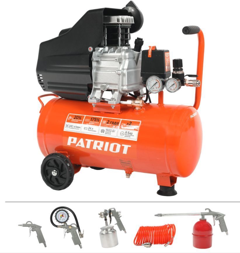 Читать все статьиPATRIOT 525306366 EURO 24 240K Компрессор поршневой масляный