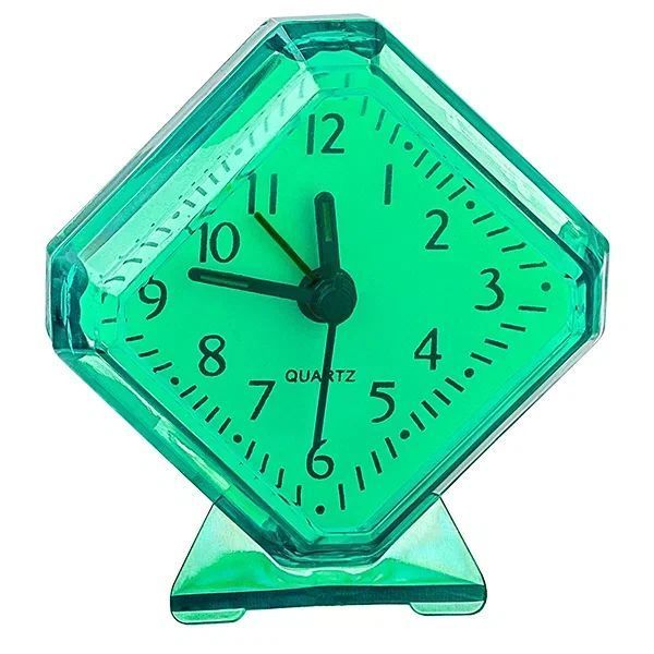 Материал корпуса: пластик Форма: ромб Размер: 75х85х30 мм Тип механизма: кварцевый Тип элемента питания: АА Количество элементов питания: 1 Будильник: есть