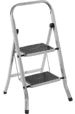 PERILLA Класс Плюс стремянка 2ст. широкие с покр./сталь. Нескользящие пластиковые коврики, размер ступеньки 30*20см, высота на уровне верхней ступени - 83см. Макс. нагрузка 150кг.