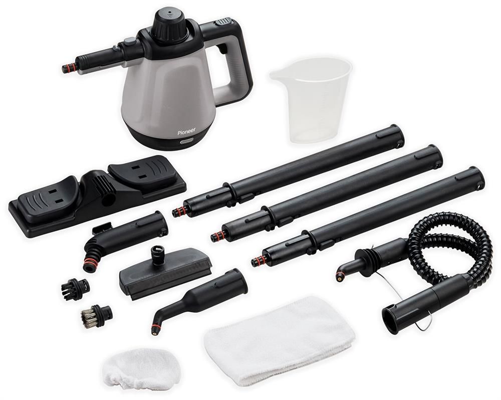 Пароочиститель и паровая швабра 2 в 1, Рабочее давление пара 3,5 бара, Емкость бойлера 400 мл., Мощность 1200 Вт, Время нагрева 3 минуты, Непрерывная подача пара до 15 минут, Возможность использования в качестве паровой швабры, Температура пара до 100 оС, Индикация включения, 11 различных аксессуаров, Алюминиевый бойлер, Длина сетевого шнура 3 м